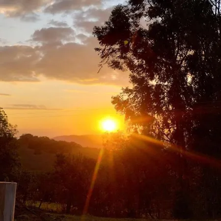 Die Villa Recanto Dos Ipes Bueno Brandão verfügt über ein privater Parkplatz und eine Terrasse mit Aussicht auf den Garten.